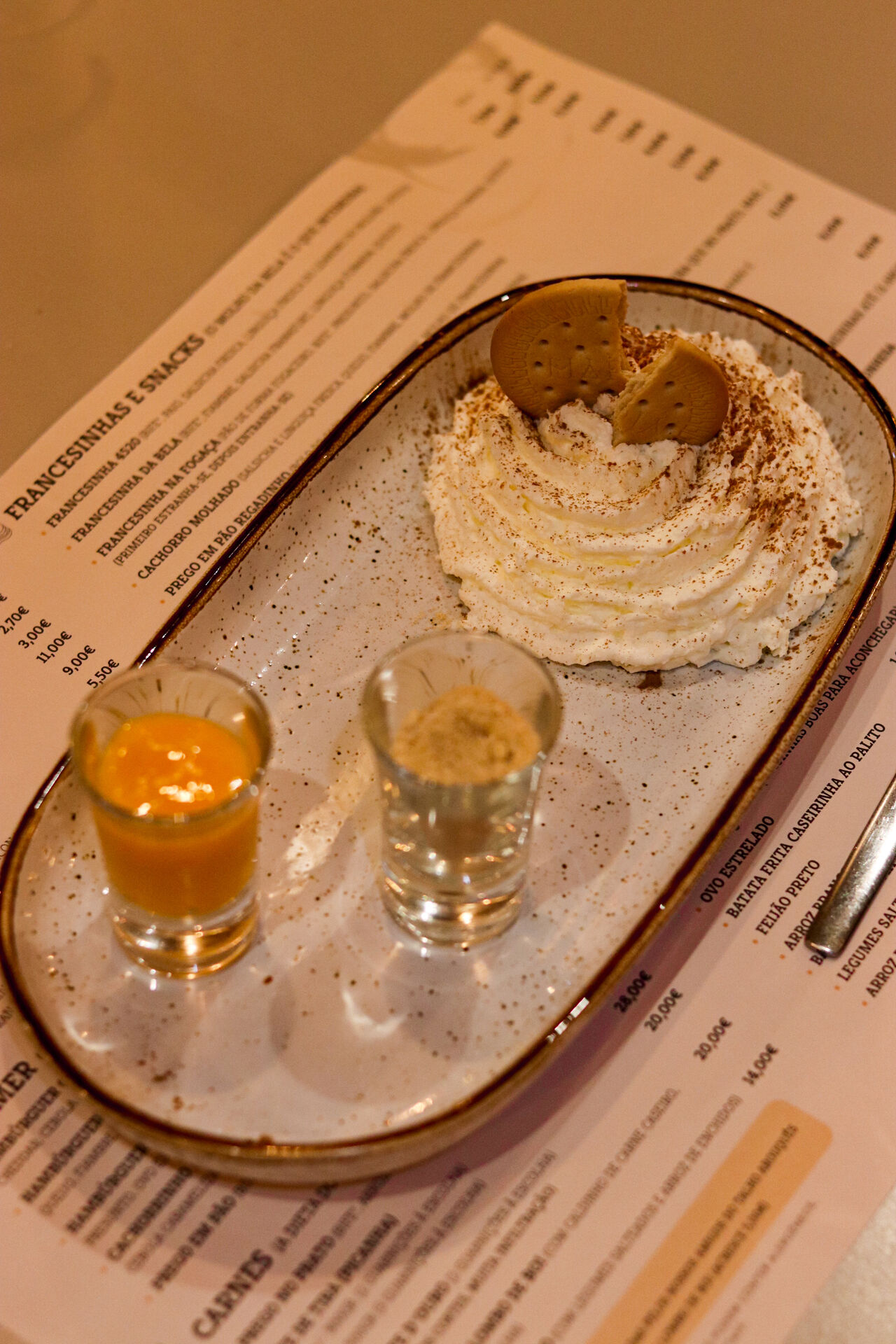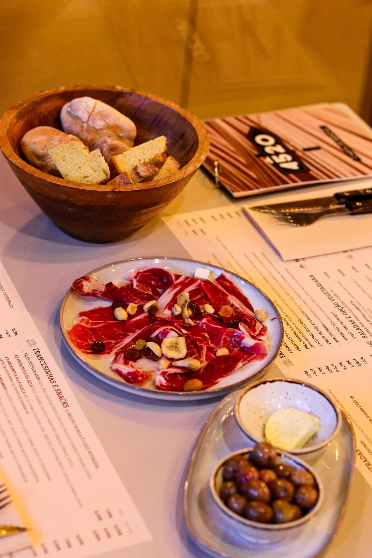 O menu destaca-se pelo grill, com carnes suculentas e opções de snacks para acompanhar bebidas.